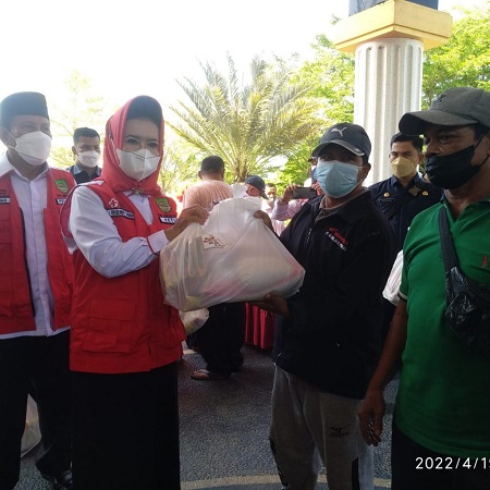 PASIR PENGARAIAN – Untuk membantu kebutuhan masyarakat jelang lebaran idul Fitri, sudah menjadi tradisi Bupati Rokan Hulu (Rohul) H. Sukiman dan Ketua PMI Rohul Hj Peni Herawati Sukiman berbagi dengan petugas taman dan kebersihan.