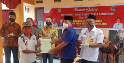 RAMBAH HILIR. RIAUMADANI. COM - Bupati Rokan Hulu H. Sukiman menyerahkan Sertifikat Tanah Objek Reforma Agraria (TORA) program Pemerintah Pusat yang dibagikan kepada warga di Desa Lubuk Kerapat Kecamatan Rambah Hilir, selasa,.