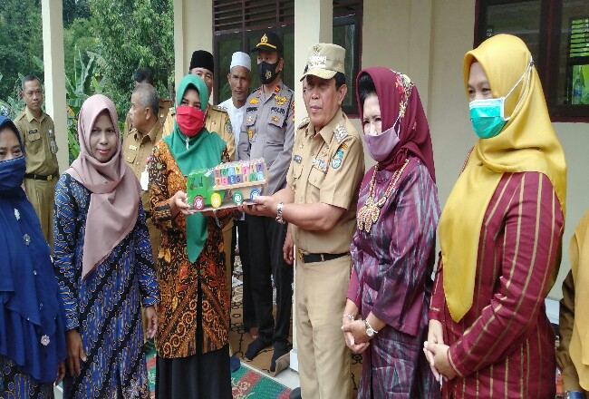 BONAI DARUSALLAM. RIAUMADANI. COM - Bupati Rohul H. Sukiman bersama Ketua TP-PKK Rokan Hulu Hj. Peni Herawati Sukiman dan rombongan hadir dalam kunjungan kerjanya ke Desa Pauh Kec. Bonai Darussalam, Senin 24 Februari.