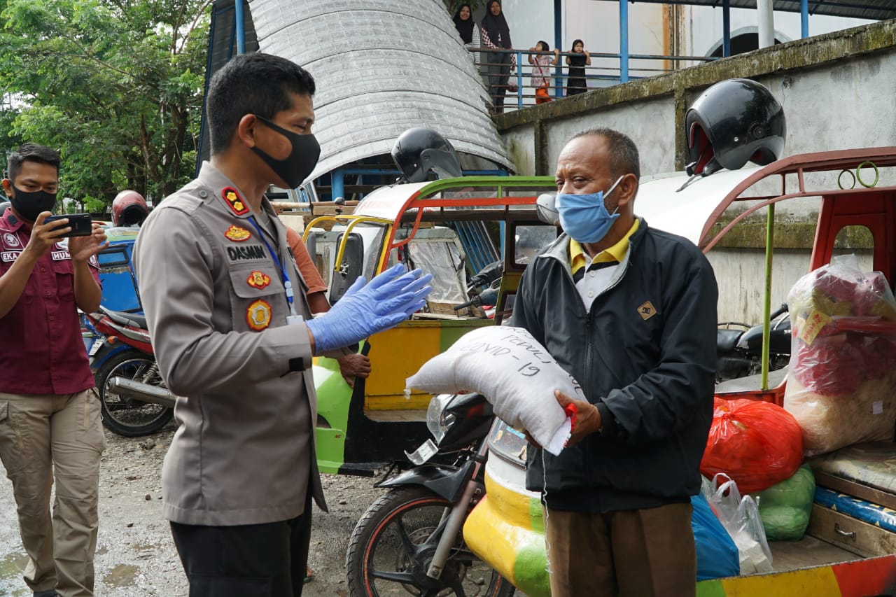 ROKAN HULU. RIAUMADANI. COM - Pembagian sembako ini dipimpin Kapolres Rokan Hulu (Rohul) AKBP Dasmin Ginting,.