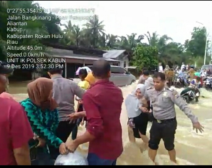 KABUN. ROHUL. RIAUMADANI. COM - Akibat Intensitas Curah Hujan yang tinggi pada siang dan sore hari senin,08 Desember 2019,anak sungai Cawan dan Sungai Bomban serta air parit yang mengakibatkan meluapnya air hingga melintasi jalan raya.