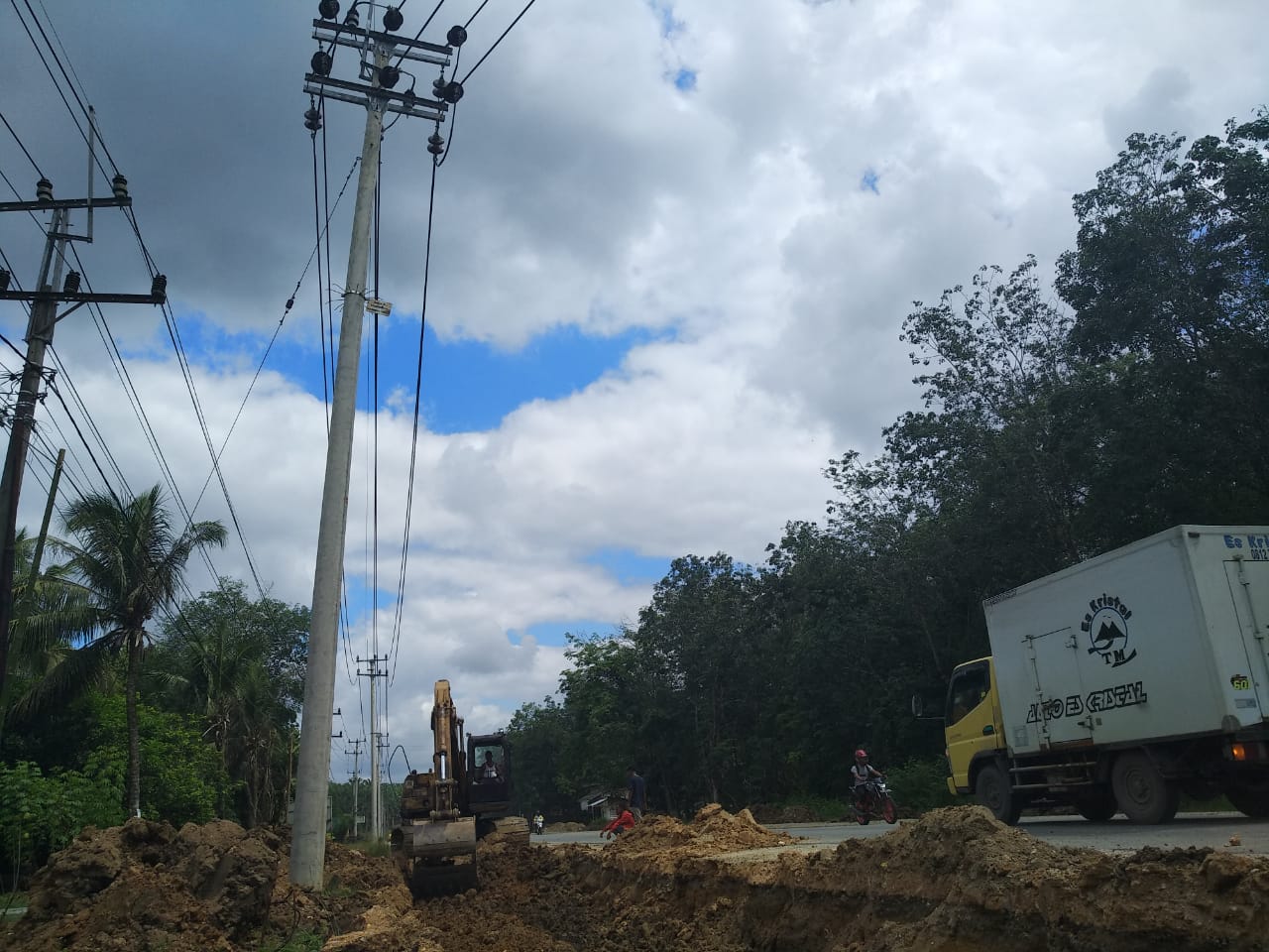 ROKAN HULU. RIAUMADANI. COM - Tiang listrik Unit Layanan Pelaksana (ULP)  PLN pasir pengaraian Kabupaten Rokan Hulu (Rohul) menghambat peningkatan jalan jalur dua yang berada di Desa Rambah Tengah Hilir Boter sampai Simpang.