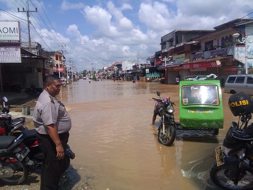 ROKAN HULU. RIAUMADANI. COM - Akibat Hujan deras melanda Kabupaten Rokan Hulu (Rohul),  mengakibatkan Sungai Batang Lubuh melimpah, sehingga menimbulkan banjir dan menggenangi, Simpang Supra,  Desa Babussalam, Kecamatan.