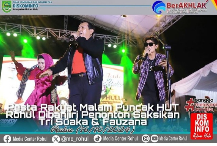 RIAUMADANI. COM, ROKAN HULU - Puncak perayaan hari ulang tahun (HUT) Rokan Hulu Ke-25 berlangsung meriah, meski diguyur hujan Ribuan warga dari segala penjuru antusias memadati lapangan Pematang Baih.