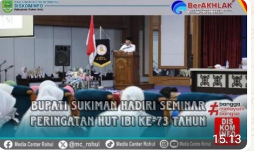 RIAUMADANI. COM, ROHUL - Dalam rangka Hari Ulang Tahun (HUT) Ikatan Bidan Indonesia (IBI) ke-73, Pengurus Cabang IBI Rokan Hulu (Rohul) laksanakan kegiatan peringatan di Hall Masjid Islamic