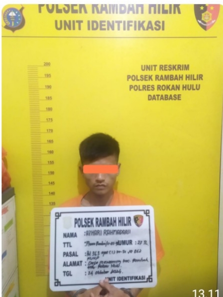 RIAUMADANI. COM, RAMBAH HILIR - Lagi dan lagi, tindak kriminal berhasil diungkap oleh Polsek Rambah Hilir. Kali ini Polsek Rambah Hilir berhasil mengamankan AR yang merupakan warga Desa Menaming, kecamatan Rambah.