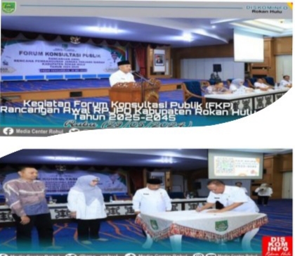 RIAUMADANI. COM, ROHUL - Pemerintah Daerah (Pemda) Rokan Hulu (Rohul) melaksanakan Forum Konsultasi Publik (FKP) tentang Rancangan Pembangunan Jangka Panjang Daerah (RPJPD) untuk tahun 2025-2045 di Hall Islamic Center, Rabu.