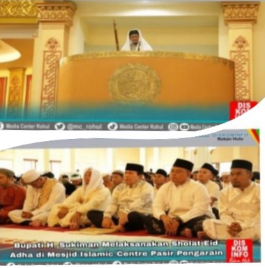 RIAUMADANI. COM, ROKAN HULU - Bupati Rokan Hulu(Rohul) H. Sukiman didampingi Ketua TP PKK Hj. Peni Herawati Sukiman melaksanakan Shalat Idul Adha 1445H/2024M bersama Ribuan Umat Muslim lainnya diIslamic Center Rokan Hulu, Senin.