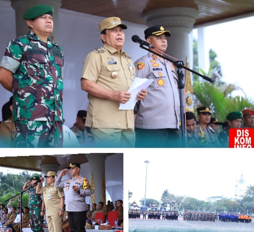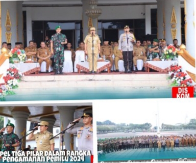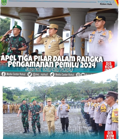 RIAUMADANI. COM. ROKAN HULU - Apel 3 (tiga) Pilar dalam Rangka Pengamanan Pemilihan Umum Tahun 2024 tingkat Kabupaten Rokan Hulu di pimpin langsung Bupati Rokan Hulu, H..