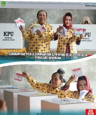 RIAUMADANI. COM, ROKAN HULU - Bupati Rokan Hulu(Rohul) H.Sukiman di dampingi Istri Hj.Peni Herawati Sukiman datangi TPS 20 di komplek Perumahan Pemda Rohul Desa Pematang Berangan untuk menggunakan Hak pilih (nyoblos) dalam Pemilu Serentak 2024.