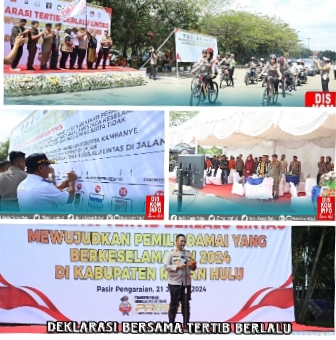 RIAUMADANI. COM. ROHUL - Bupati Rokan Hulu yang diwakili Kadis Perhubungan Hadiri Deklarasi tertib berlalulintas mewujudkan Pemilu Damai yang Berkeselamatan tahun 2024 di Kabupaten Rokan Hulu.