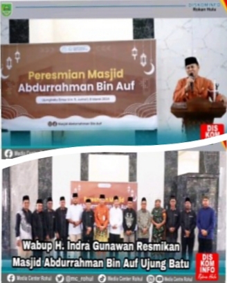 RIAUMADANI.COM, ROHUL - Wakil Bupati Rokan Hulu (Rohul) H. Indra Gunawan resmikan Masjid Abdurrahman Bin Auf, Desa Ujungbatu Timur, Kecamatan Ujung Batu, Jumat.