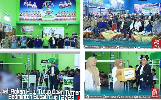 RIAUMADANI. COM, ROHUL - Bupati Rokan Hulu H.Sukiman secara resmi tutup Open Turnamen Batminton Bupati Cup I tahun 2023 yang berlangsung di Gor.