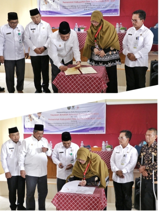 RIAU MADANI. COM. SIAK -PERAWANG - Pemerintah kabupaten Siak melakukan Memorandum of Understanding (MoU) dengan Yayasan Amaliah Keluarga Sakinah Indonesia tentang kerjasama bidang literasi keuangan dan wirausaha syariah,.