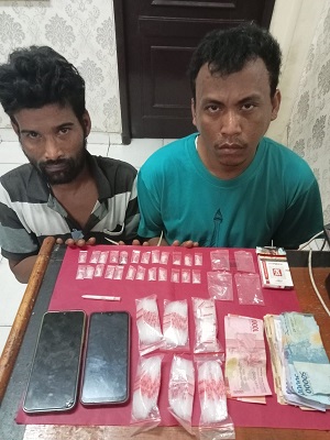 RIAU MADANI. COM. Siyak - Satuan Reserse ( Satres ) Narkoba Polres Siak Polda Riau menangkap dua orang pria diduga pelaku tindak pidana penyalahgunaan narkotika diduga jenis shabu di Jalan Raya Pekanbaru-Duri.