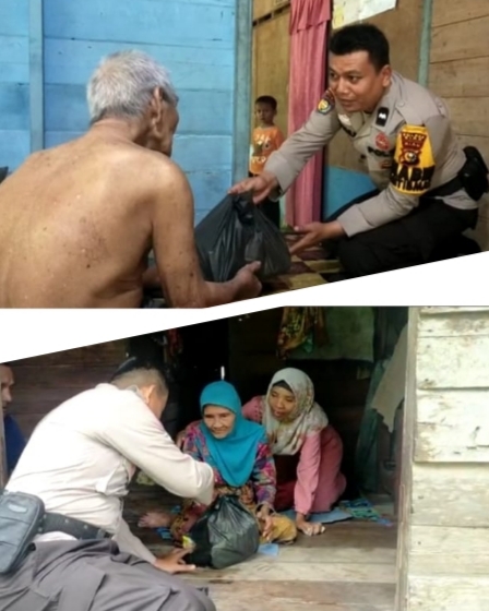 RIAU MADANI.COM. SIAK - Sungai Apit, Penghulu Kampung Teluk Batil bersama Ketua Kampung Siaga menyerahkan bantuan kepada warga yang Menderita.