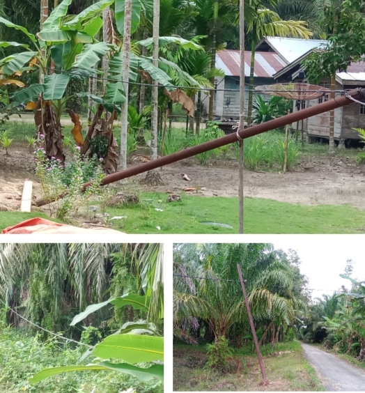 RIAU MADANI COM, SIAK - Dengan adanya Tiang PLN, yang Miring ke bahu jalan, maka masyarakat yang menggunakan jalan tersebut sebagai Aktivitas.