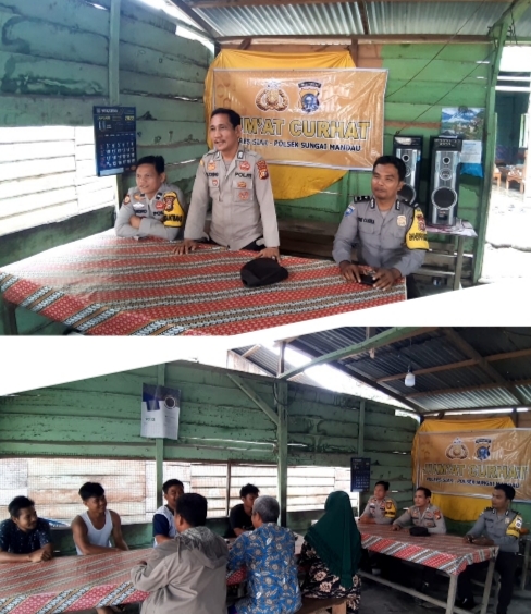 RIAU MADANI. COM. SIAK, Sungai Mandau - Dalam rangka menyerap aspirasi masyarakat, Kapolsek Sungai Mandau laksanakan kegiatan rutin Jum'at Curhat yang di adakan di Aula kantor Kampung Sungai Selodang Kecamatan Sungai.