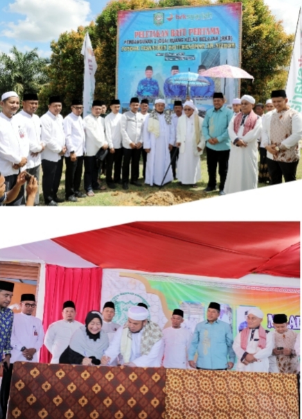 Bupati Siak Alfedri menghadiri Gema Sholawat dan Haflah Milad Pondok Pesantren (Ponpes) Baiturrahman An-Nizom yang ke - 8, bersama Murobby Ruhina KH. Abdullah.