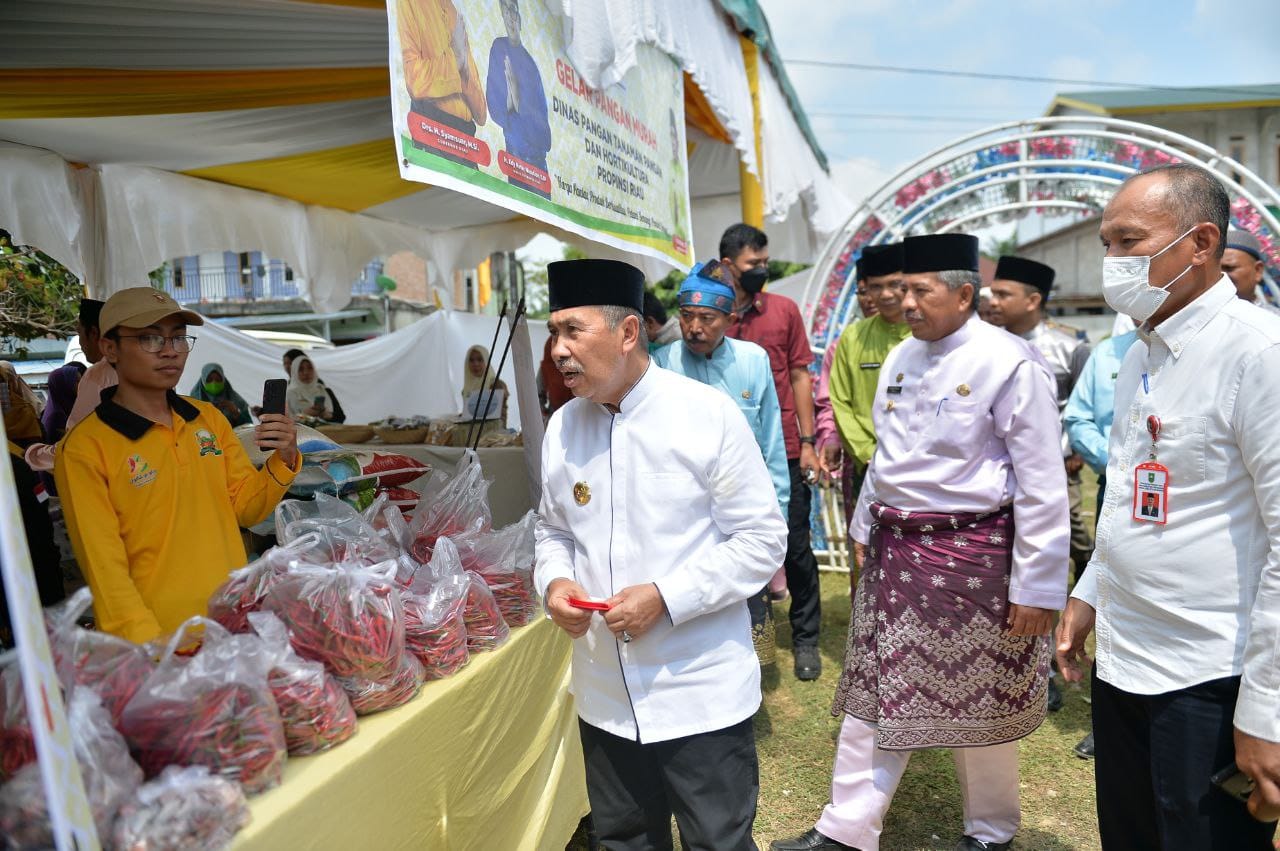KANDIS, SIAK - Gubernur Riau (Gubri), Syamsuar meninjau pelaksanaan operasi pasar yang berlangsung di Desa Simpang Belutu, Kecamatan Kandis, Kabupaten Siak Riau, Jumat.
