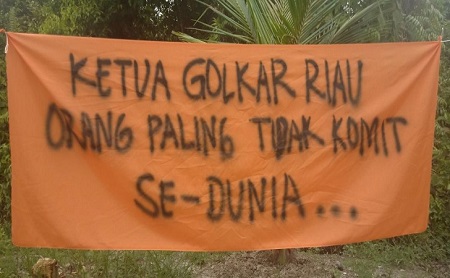 RIAUMADANI. COM - Sejumlah kader Partai Golkar menggelar aksi protes di depan sekretariat DPD II Golkar Kabupaten Siak, Riau, Jalan Raja Kecik, Kota Siak Sri Indrapura, Senin.
