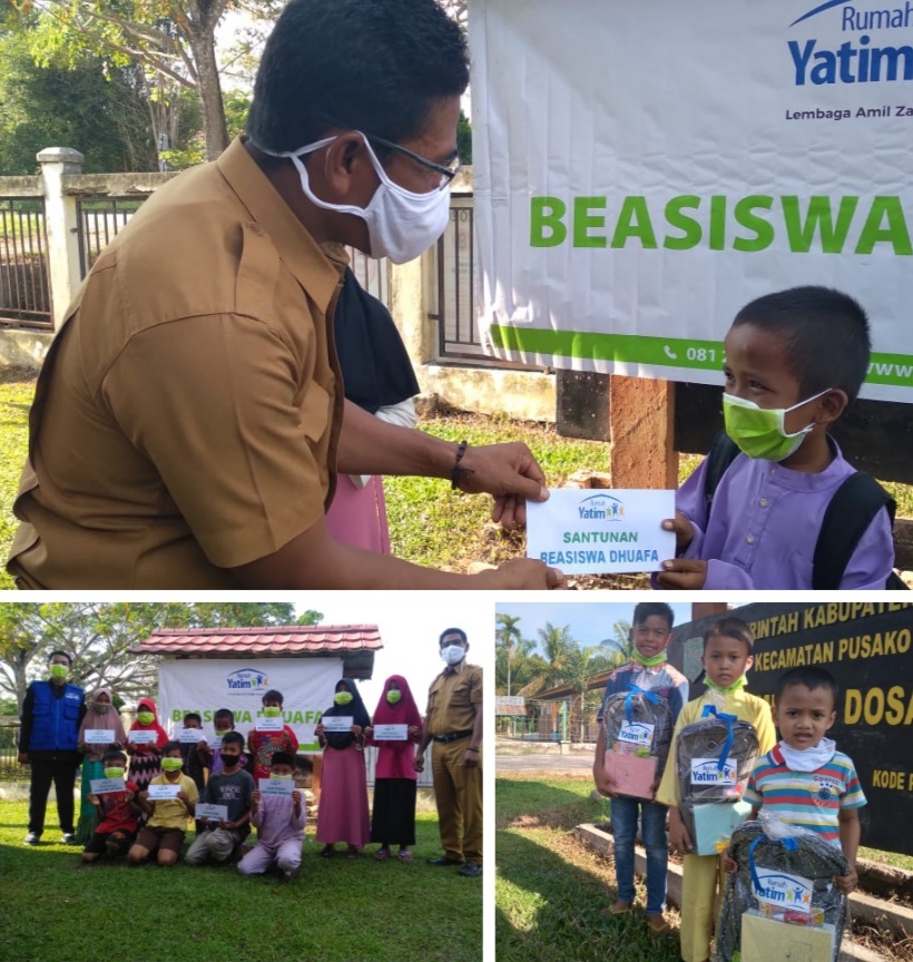SIAK. RIAUMADANI. COM - Senin (19/10/2020) Rumah Yatim Cabang Riau menyalurkan bantuan pendidikan berupa paket perlengkapan sekolah kepada 5 anak dan bantuan beasiswa dhuafa untuk 19 anak di Desa Dosan, Kecamatan.