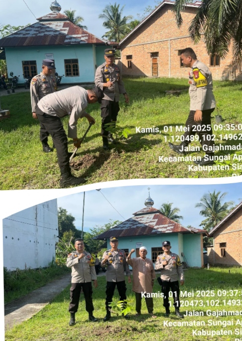 SUNGAI APIT, RIAU MADANI. COM - Dalam upaya mendukung program Polri "Lestarikan Negeri Penghijauan Sejak Dini," Kapolsek Sungai Apit AKP. Rinaldi Parlindungan. SH, bersama.
