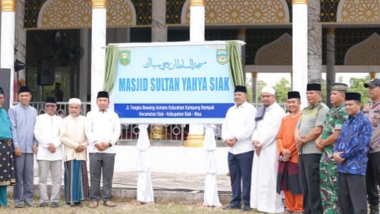 SIAK SRI INDRAPURA. RIAU MADANI. COM - Bupati Siak Alfedri resmikan Masjid Sultan Yahya yang lokasinya berada di lingkungan Pondok Pesantren Darul Hadist Sultan Yahya Siak jalan Sapta Taruna Kelurahan Kampung Rempak, Kecamatan.