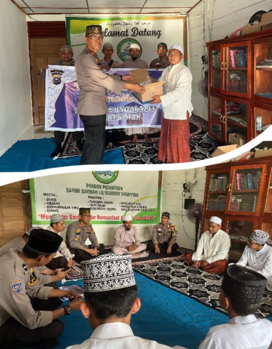 RIAUMADANI. COM, SUNGAI APIT - Semarak Ramadhan 1446H Kapolsek Sungai Apit, AKP. Rinaldy Parlindungan SH, beserta Personil melaksanakan kegiatan berbagi 100 Takjil kepada para Santri di Pondok Darud Dakwah Li'ulumsy Syariah Sungai Apit Kabupaten.