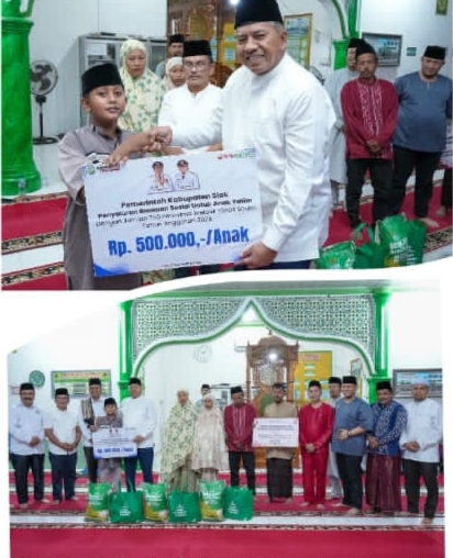 SUNGAI APIT, RIAUMADANI. COM - Sekretaris Daerah Kabupaten Siak Arfan Usman menghadiri acara Syukuran atas difungsikan kembali Masjid Amirul Mukminin setelah selesai di renovasi.
