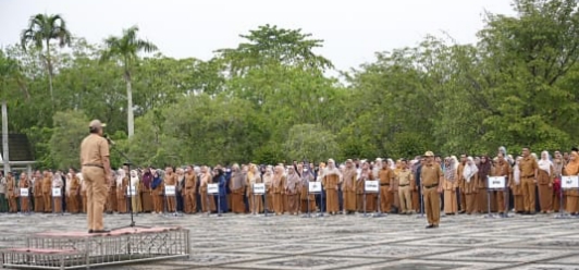 RIAUMADANI. COM, SIAK – Memasuki hari pertama kerja pasca libur dan cuti bersama Idul Fitri 1446 Hijriyah, Pemerintah Kabupaten Siak menggelar apel pagi perdana di halaman Kantor Bupati Siak, Selasa.