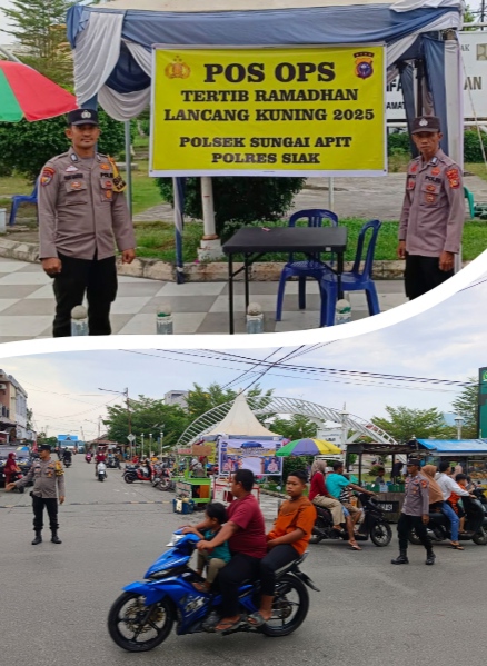 RIAUMADANI. COM, Sungai Apit - Polsek Sunggal Apit melaksanakan kegiatan pengamanan dan pengaturan lalu lintas dalam rangka menjaga ketenangan masyarakat untuk berburu takjil untuk berbuka puasa di Kelurahan Sungai Apit kecamatan Sungai Apit.
