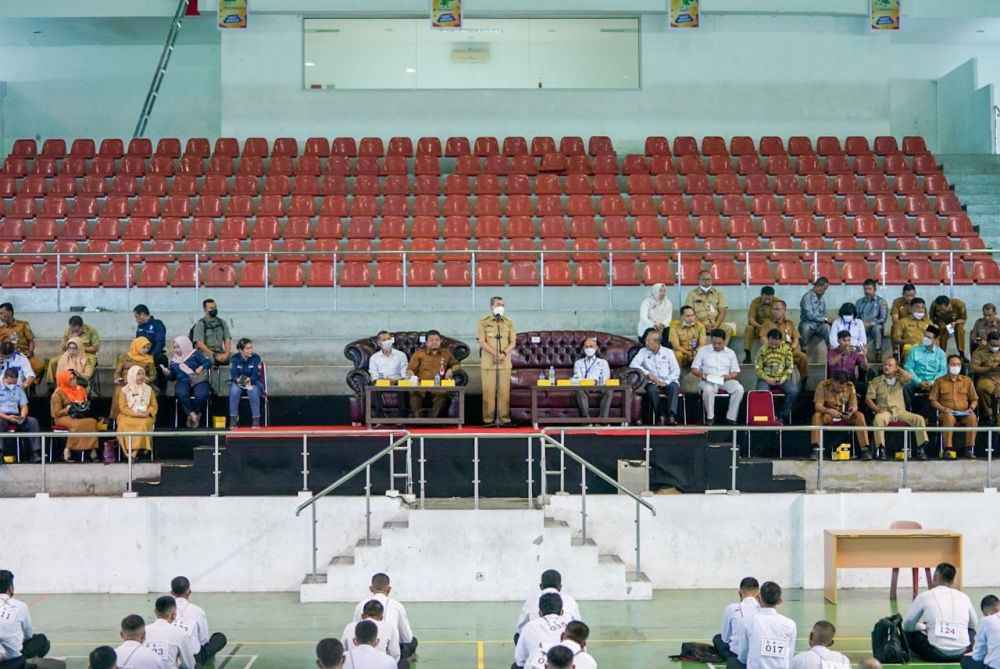 PEKANBARU- Gubernur Riau (Gubri) Syamsuar resmi membuka seleksi peserta program pemagangan ke Jepang tahun 2022 di Gelanggang Olahraga Remaja, Selasa.