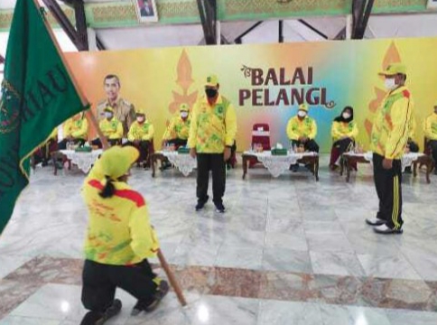 RIAUMADANI. COM - Gubernur Riau Syamsuar, Senin (1/11/2021) sore melepas langsung keberangkatan kontingen Riau yang akan tanding pada Pekan Paralimpik Nasional (Peparnas) XVI.