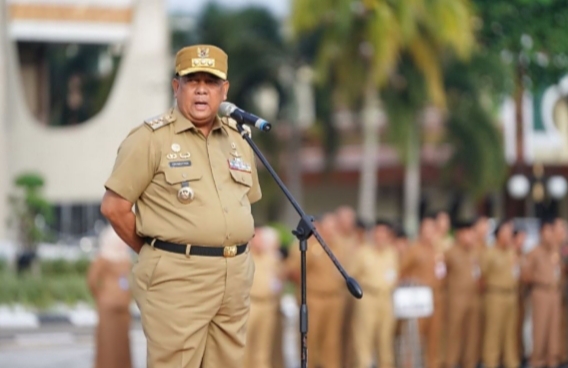 RIAUMADANI. COM, PEKANBARU - Gubernur Riau (Gubri) Edy Natar Nasution pimpin apel perdana awal tahun.