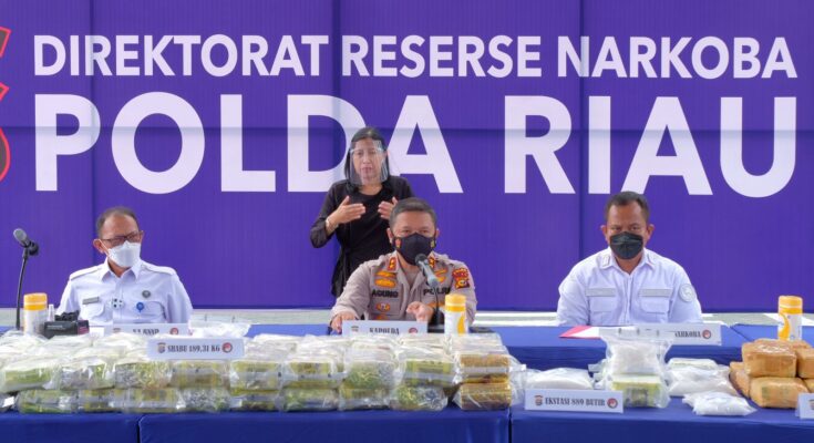 RIAUMADANI. COM - Selama periode September 2021, Polda Riau dan jajaran berhasil mengungkap setidaknya 10 kasus tindak pidana narkoba dengan menangkap 22 pelaku serta barang bukti 189,31 kg.