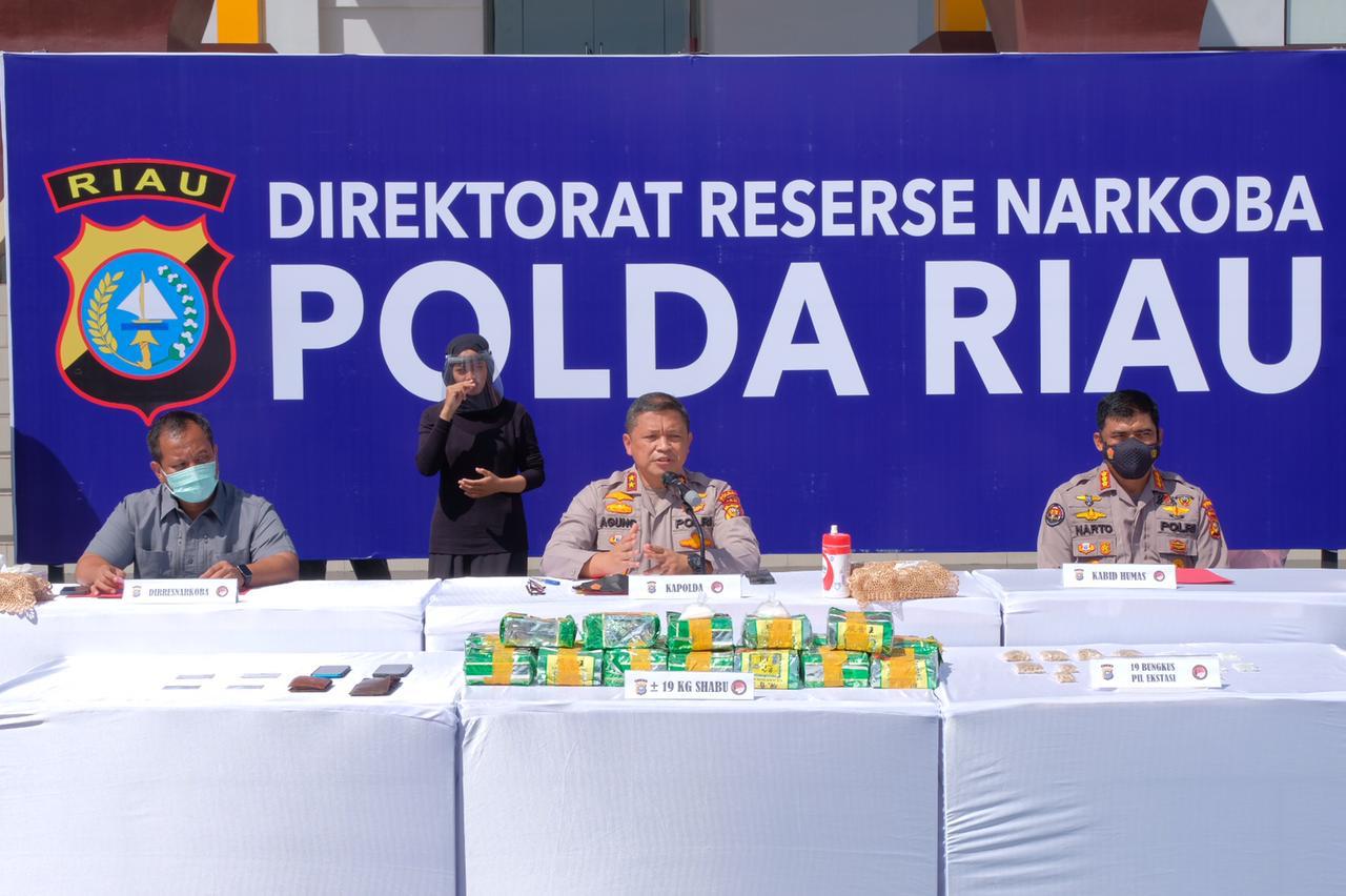 dua kelompok narkoba itu, Polda Riau menyita 18 kilogram narkoba jenis.