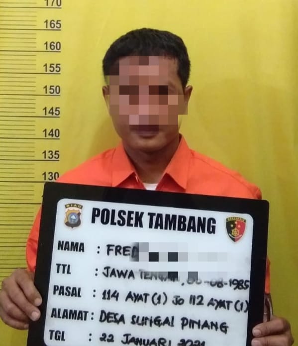 RIAUMADANI. COM - Unit Reskrim Polsek Tambang amankan seorang pelaku narkoba pada Jumat sore (22/1/2021), di wilayah Desa Sungai Pinang Kecamatan Tambang,.
