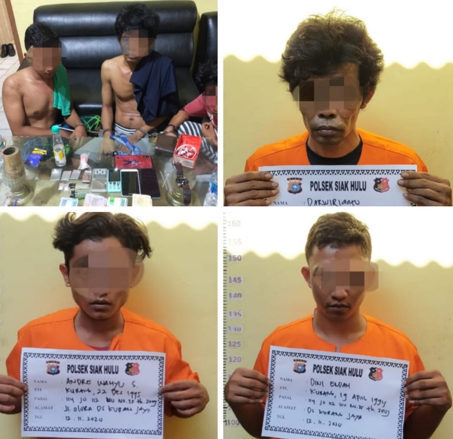 SIAK HULU. RIAUMADANI. COM - Unit Reskrim Polsek Siak Hulu amankan 3 pria yang diduga sebagai pengedar narkotika jenis shabu, ketiganya diamankan pada Kamis dinihari (12/11/2020 di Gang Masjid Nurul Hijrah jalan Kubang Raya Desa Kubang Jaya..
