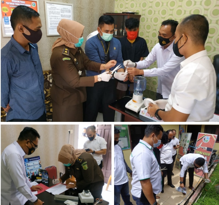 KAMPAR. RIAUMADANI. COM - Satuan Reserse Narkoba Polres Kampar Musnahkan barang bukti narkotika jenis shabu sebanyak 9,45 gram, yang dilakukan di ruangan staf Satres Narkoba Polres Kampar. Rabu pagi.