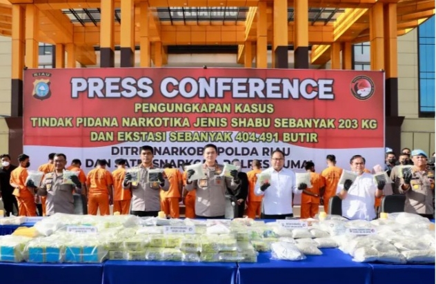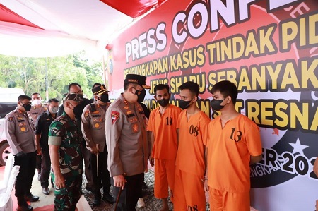 PEKANBARU – Kerjasama Direktorat Reserse Narkoba (Ditnarkoba) Polda Riau bersama Direktorat Intelkam dan Polres Dumai berhasil menggulung 16 (Enam Belas) tersangka komplotan.