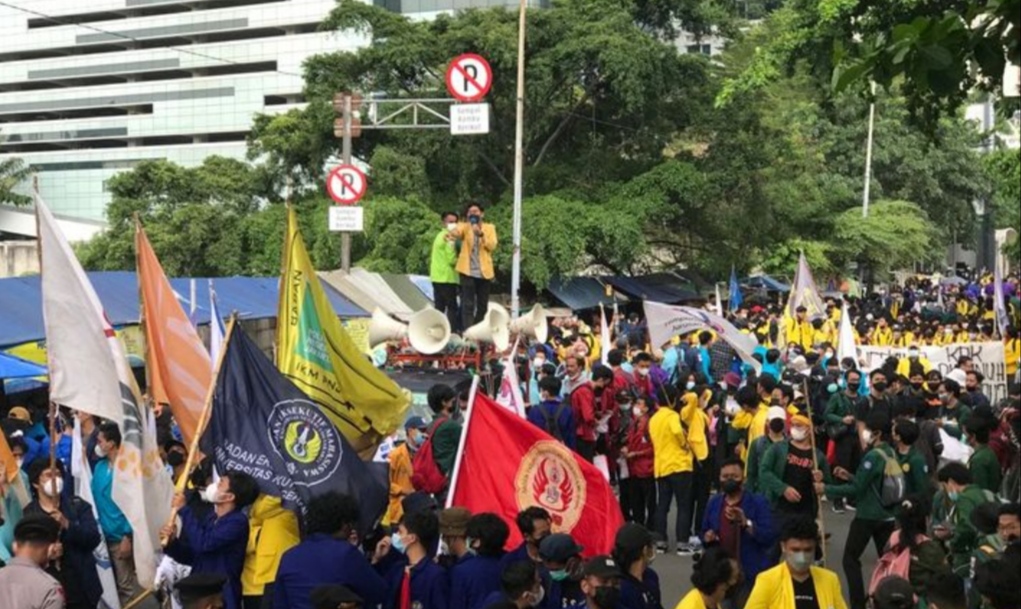 RIAUMADANI. COM - Aliansi Badan Eksekutif Mahasiswa Seluruh Indonesia (BEM SI) dalam orasinya memberikan lima tuntutan saat unjuk rasa di kawasan Gedung Merah Putih KPK, Jalan Kuningan Persada, Jakarta Selatan, Senin.