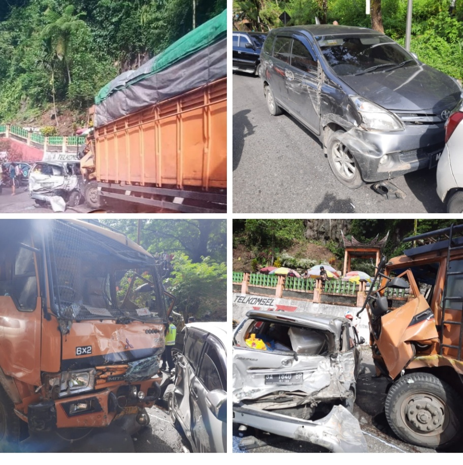 satu unit truk tronton menyeruduk belasan kendaraan. Kecelakaan beruntun